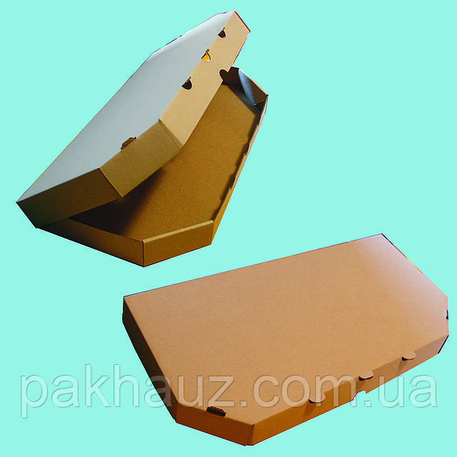 Коробка для упаковки половини гарячої піци діаметром до 32 см. Матеріал коробки - білий або коричневий микрогофрокартон марки ТК-23Е. Замовлення від 1 шт. Нанесення друку. Від виробника.
